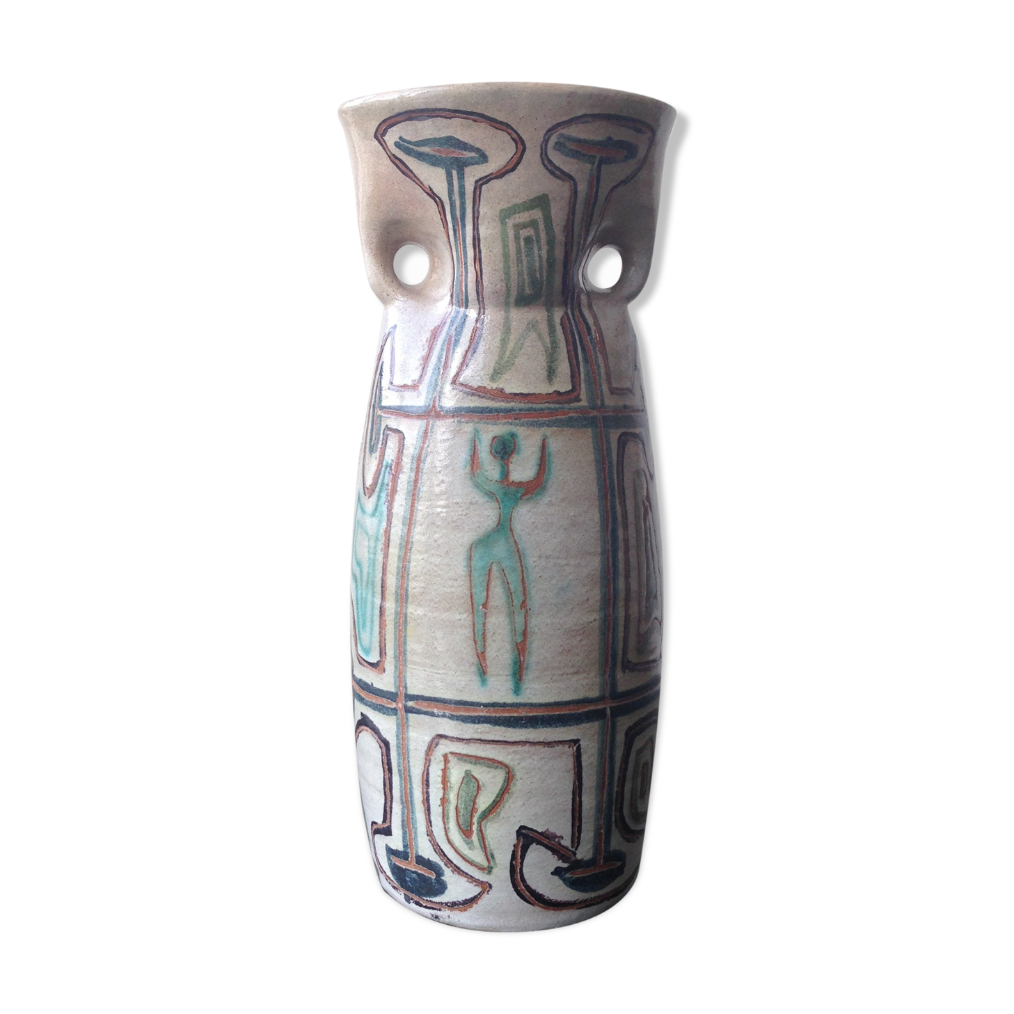 Vase Mid Century En Ceramique Avec Motif Figurine De Accolay 1950s En Vente Sur Pamono